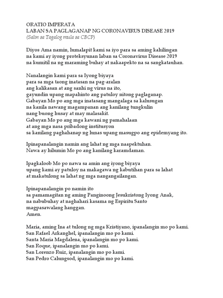 Oratio Imperata Laban Sa Paglaganap Ng 2019 Novel Coronavirus Pdf