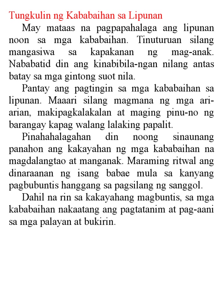 Tungkulin Ng Kababaihan Sa Lipunan Pdf