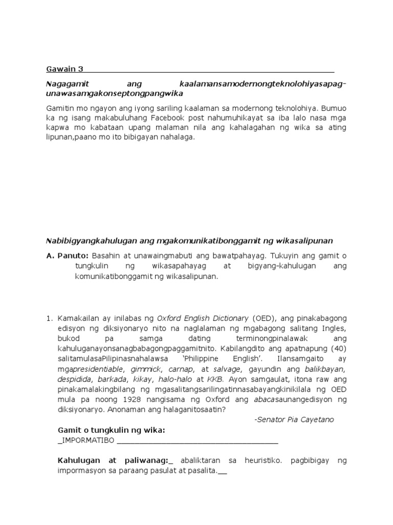 Na linisin ang kanyang kwarto at lalabhan ang mga damit. Kaya ng mga kabataan na paunlarin ang panlipunang eknomiya ng isang bansa bastat magabayan lamang sila ng tama. Ang Tungkulin Bilang mag-aaral.