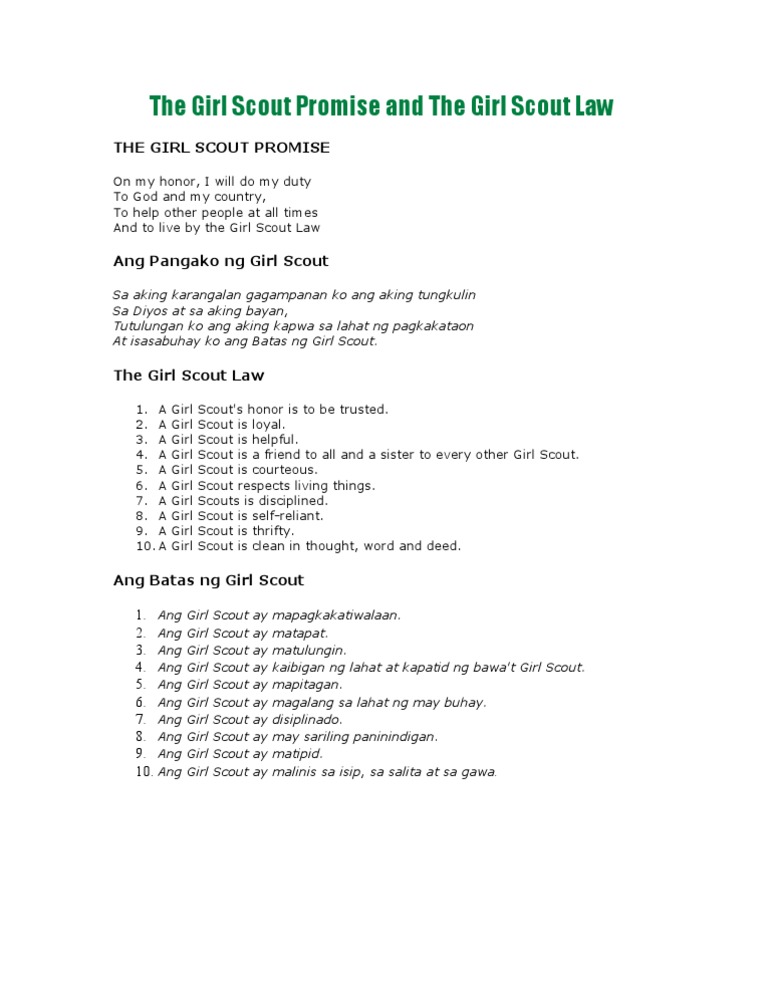 The Girl Scout Promise And The Girl Scout Law Pdf
